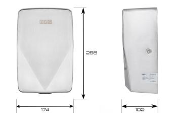 Сушилка изготовлена из высококачественных материалов, которые полностью безопасны и не токсичны. Низкий уровень потребляемой мощности с возможностью отключения нагрева воздуха и быстроты сушки рук, позволяет экономить электроэнергию