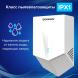 Мощность 1300 Вт обеспечивает время сушки рук за 7-9 секунд. Стандарт IPX1 гарантирует защиту от брызг. Включается и выключается сушилка автоматически при помощи инфракрасного сенсора. Пластиковый корпус в белом цвете впишется в любой интерьер. В комплект входит набор для монтажа: шурупы с пластиковыми дюбелями, кронштейн и шаблон установки для удобства разметки точек крепления.